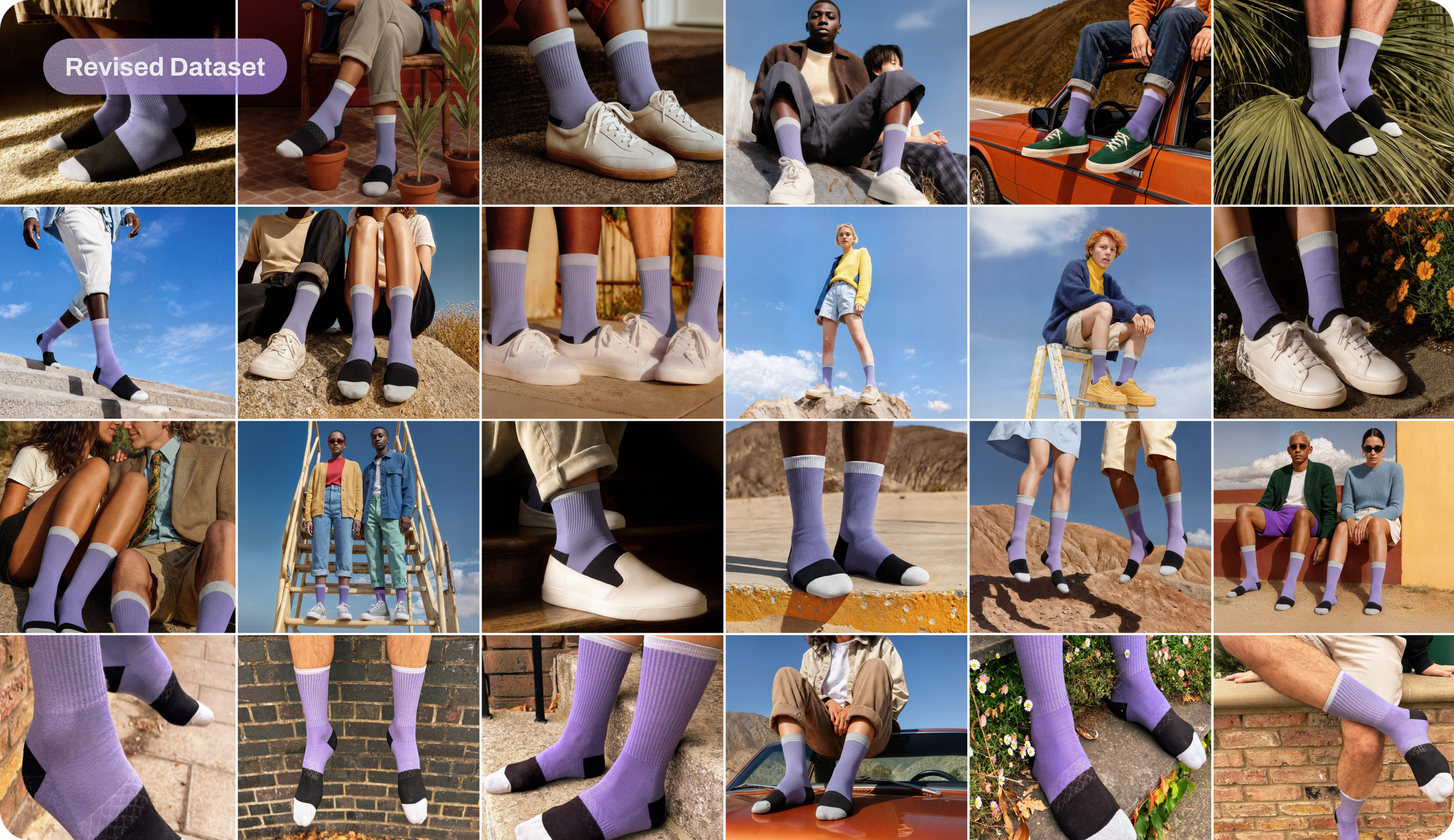 For the dataset, we focused on a collection of images that captured the product from different angles, in different lighting, and in poses that reflected all the brand attributes we had defined.